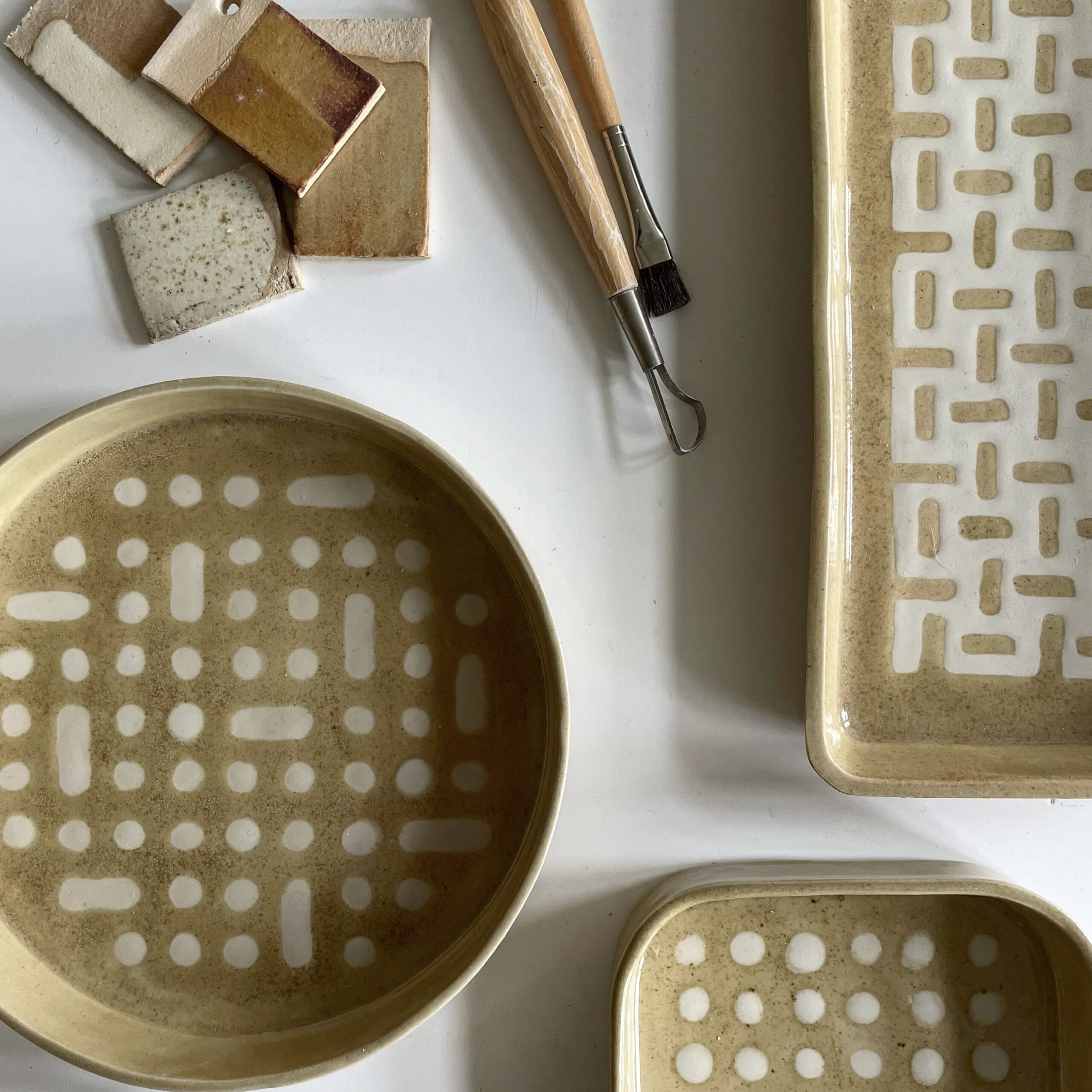 slipcasted clay, white and iron glazes