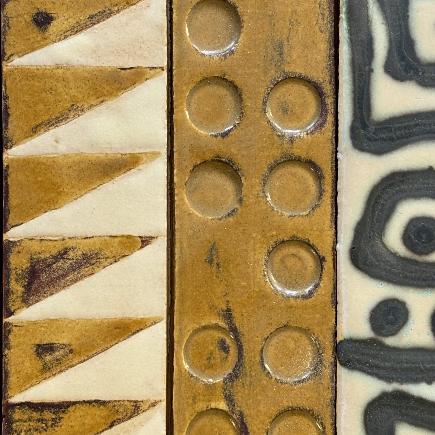 handmade tiles, various glazes with iron. bespoke frame in oak.