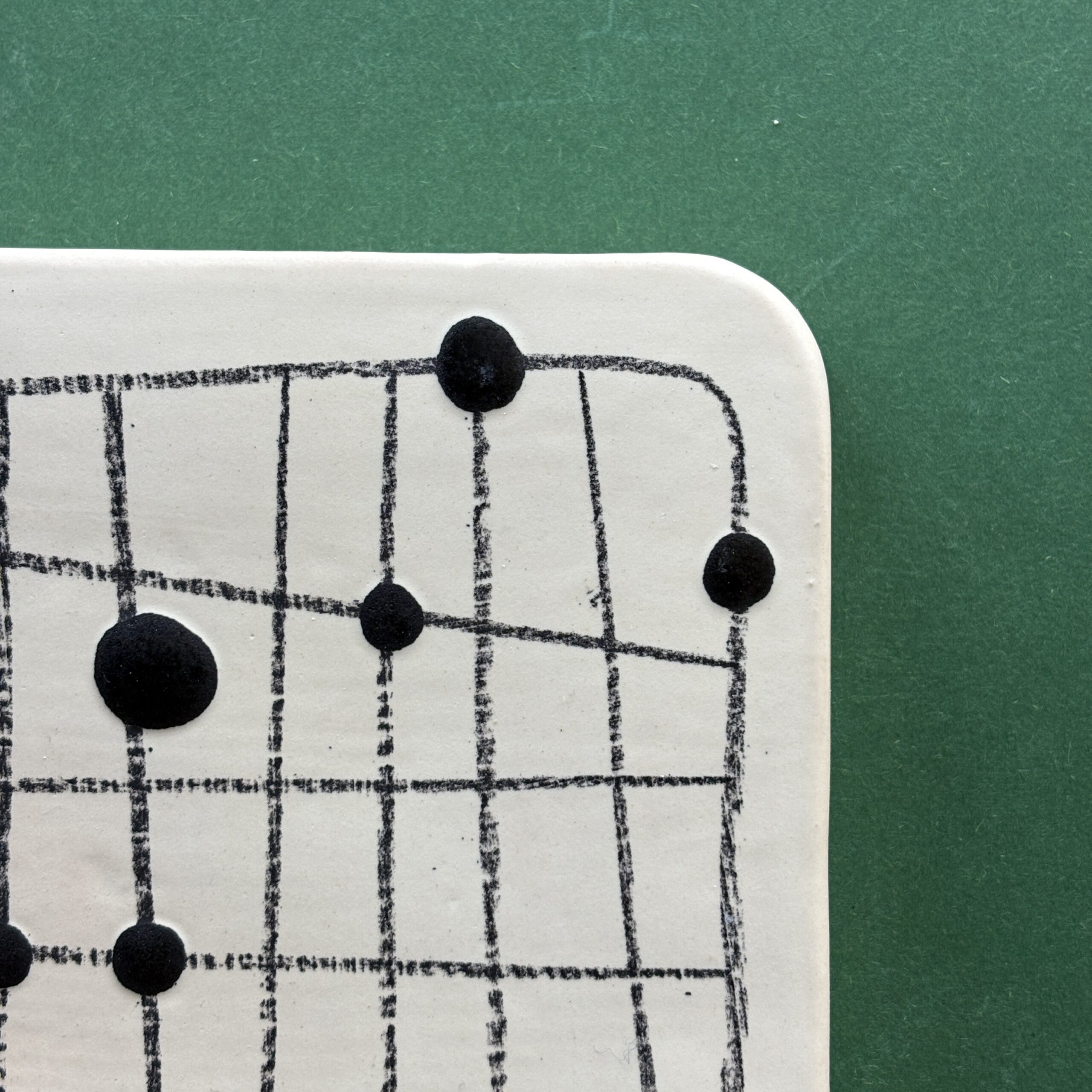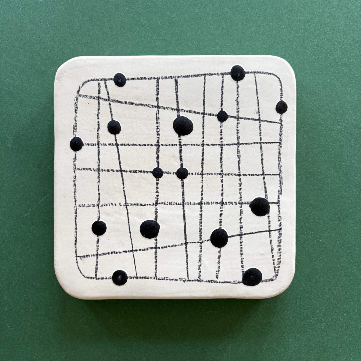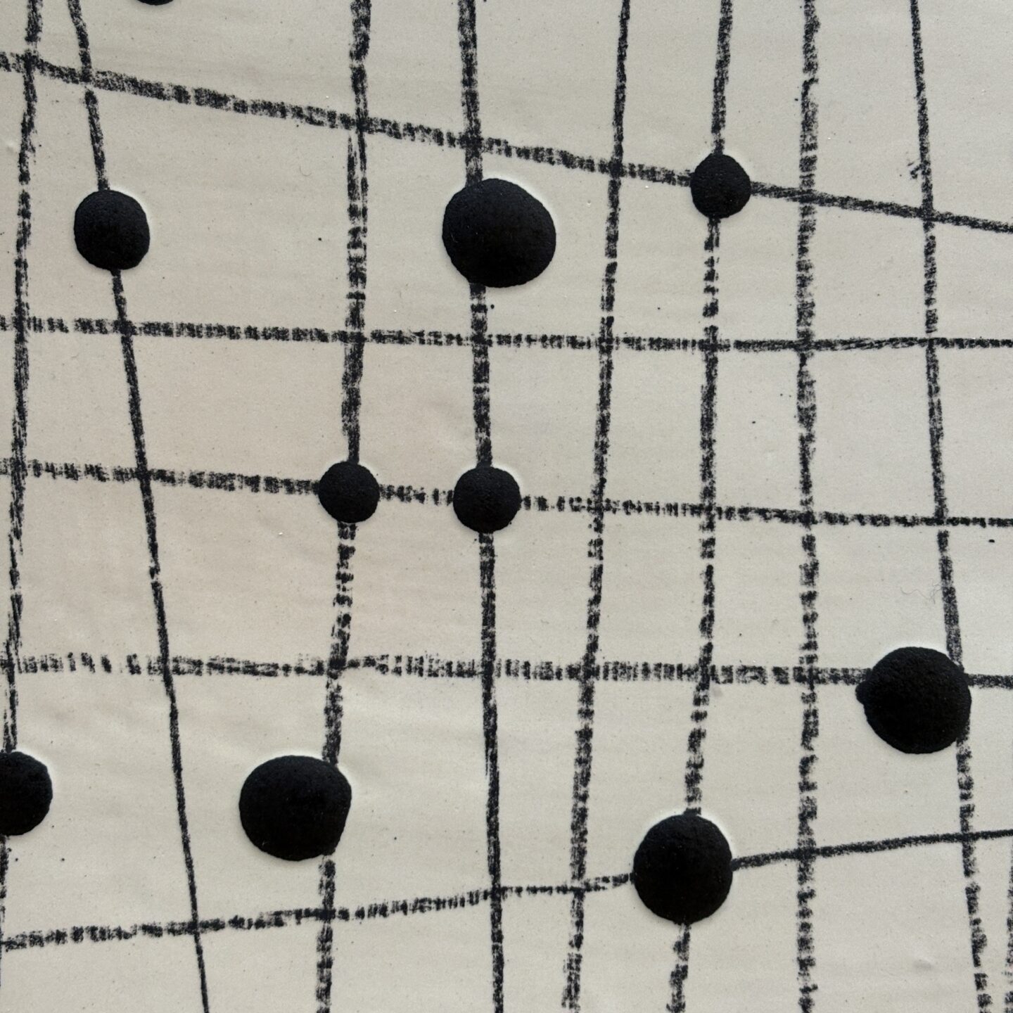 slip casted clay. ceramic pencil, black and white glazes.